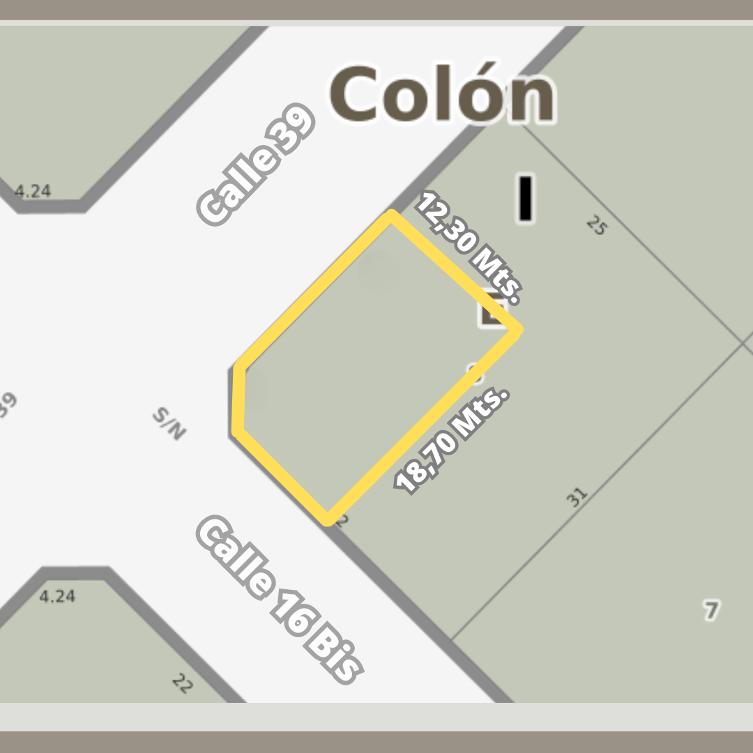 Terreno de 12,3 x 18,7 metros (225 M2)