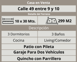 Casa en Venta – 49 entre 9 y 10